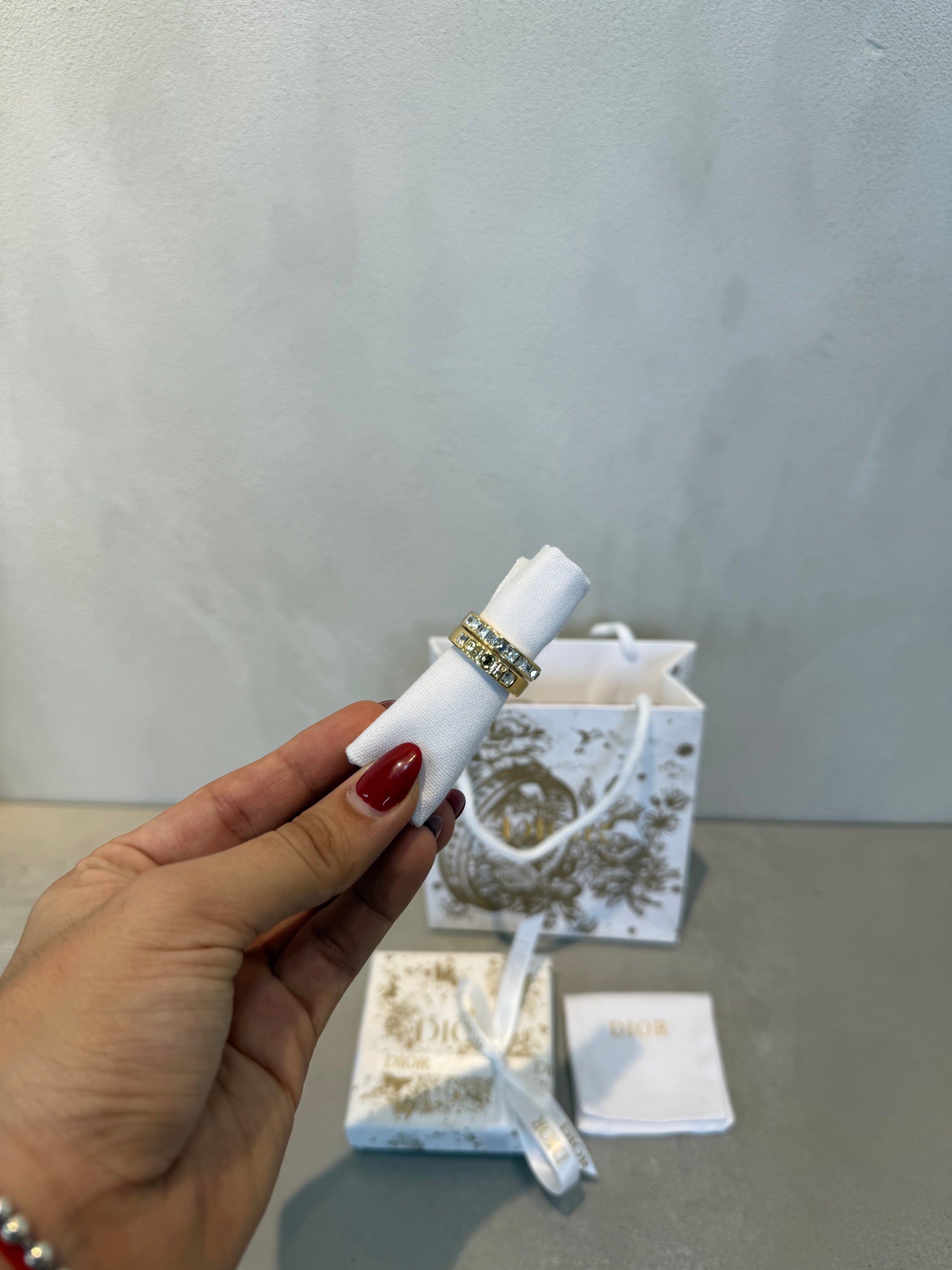 Este anillo CD combina elegancia minimalista con un toque de lujo contemporáneo. Su diseño dorado envuelve un diamante central que captura la luz con precisión, creando un brillo cautivador que define la sofisticación. El icónico logo CD se integra armónicamente en la estructura, otorgando a la pieza una identidad de marca inconfundible. Versátil y atemporal, este anillo trasciende ocasiones, complementando tanto looks cotidianos como eventos especiales con una distinción innegable.
