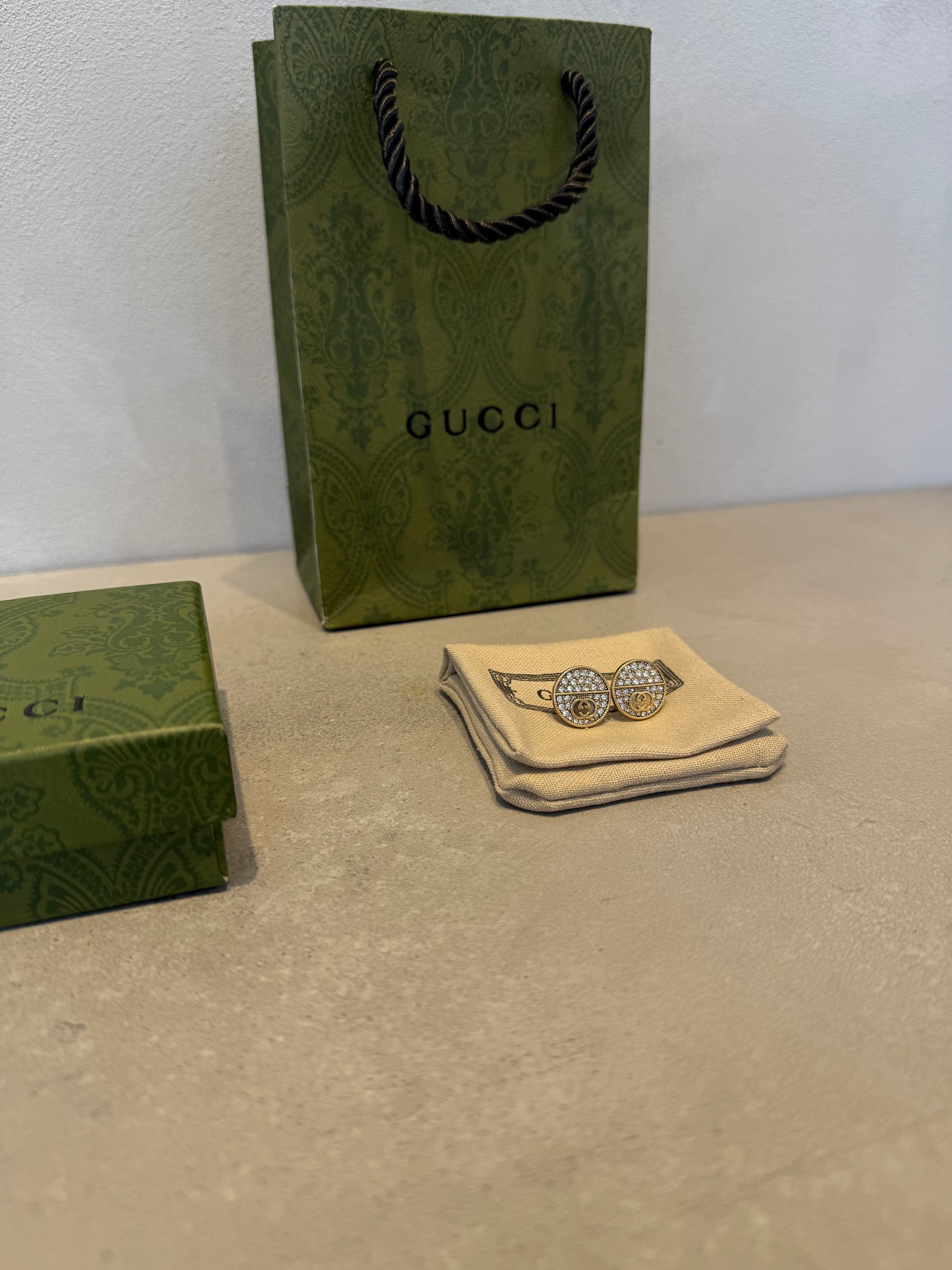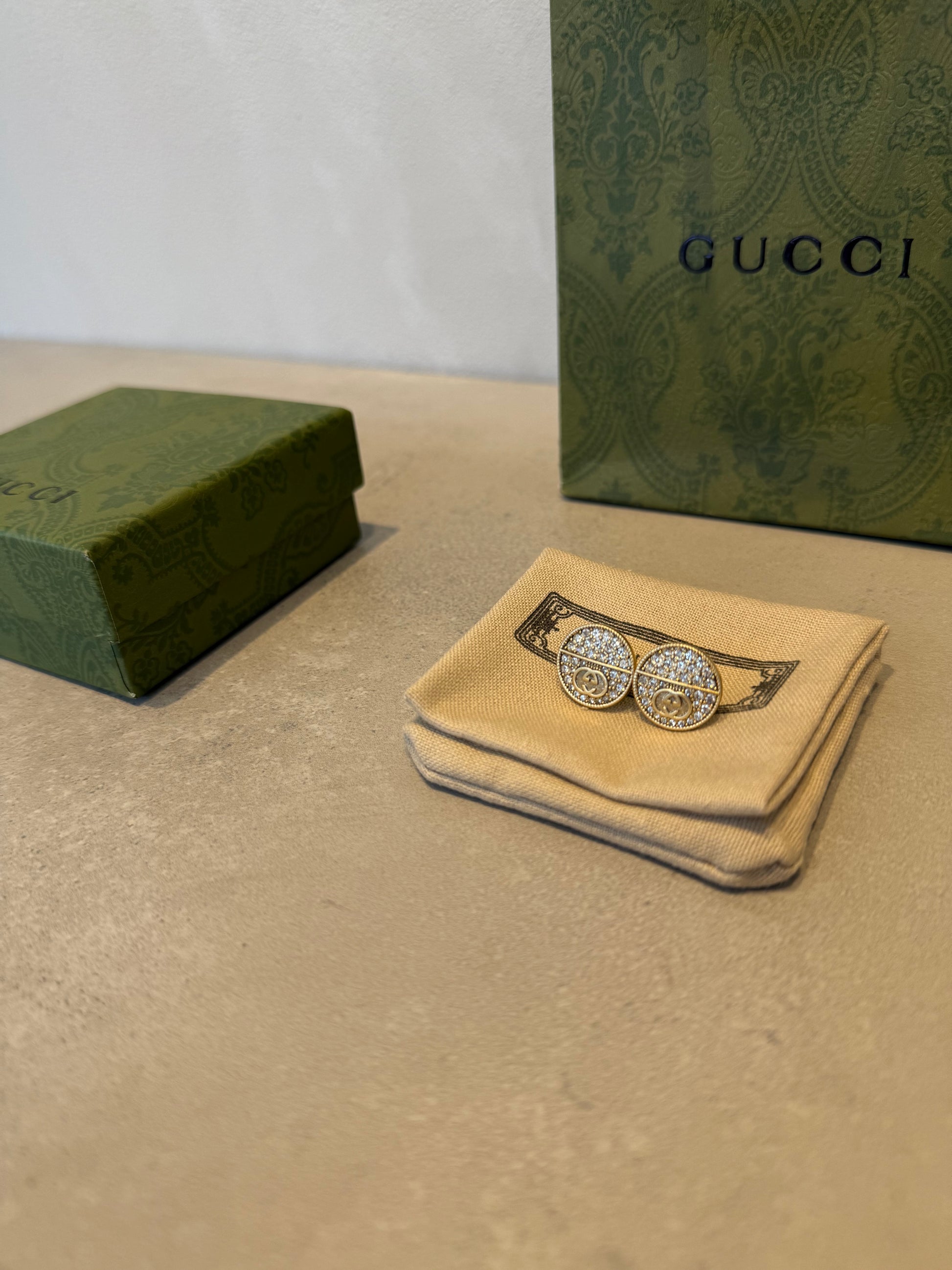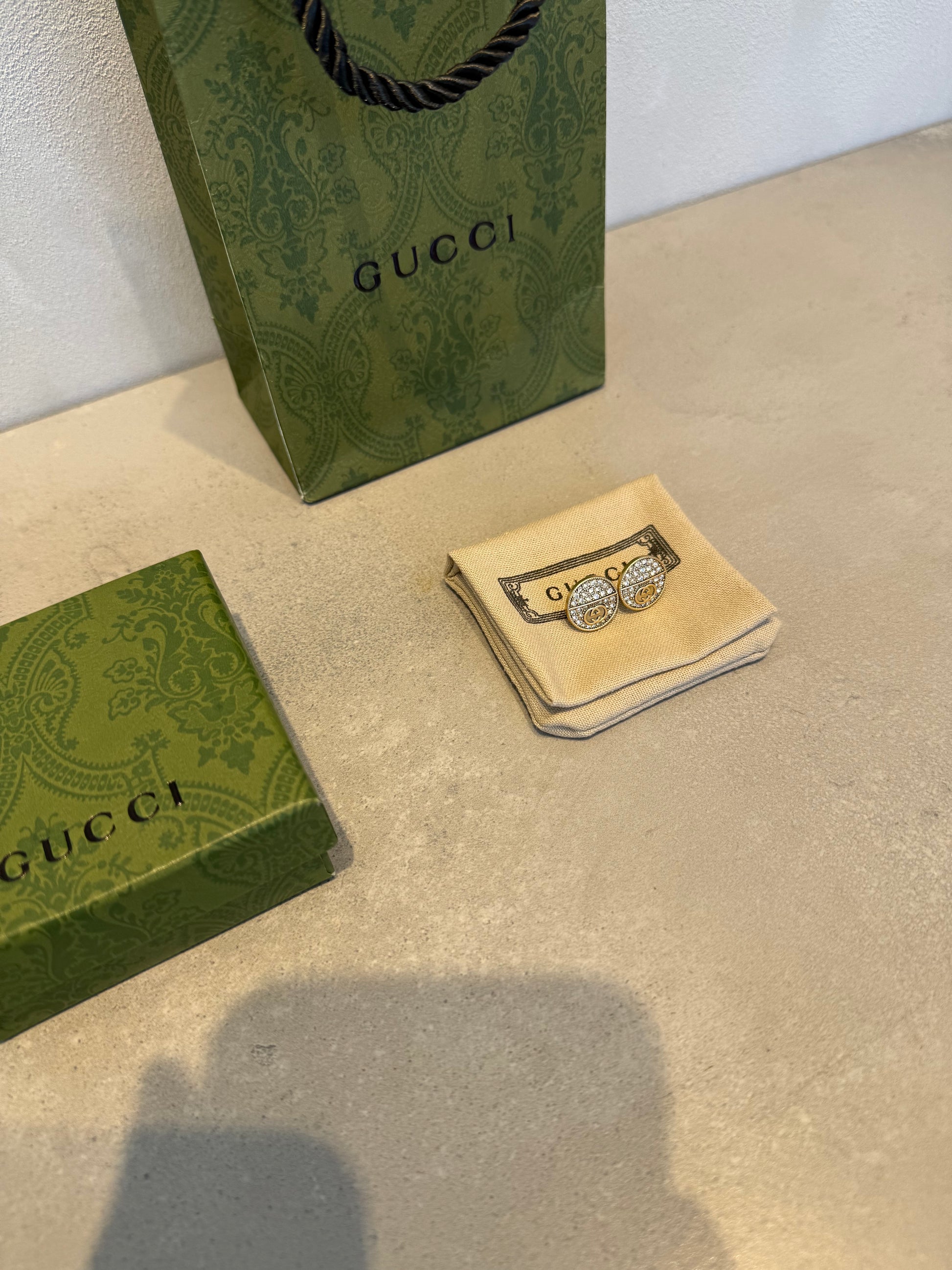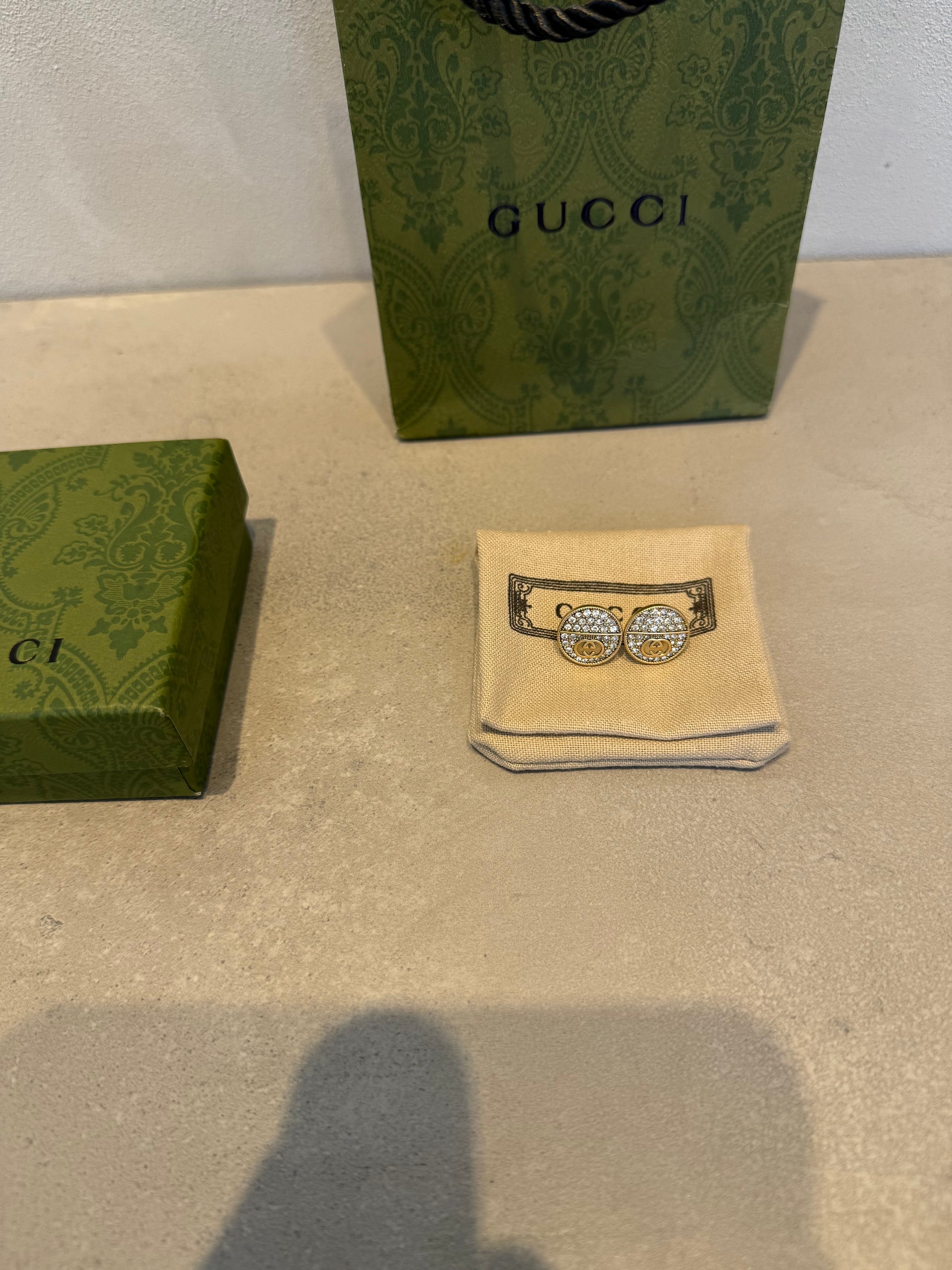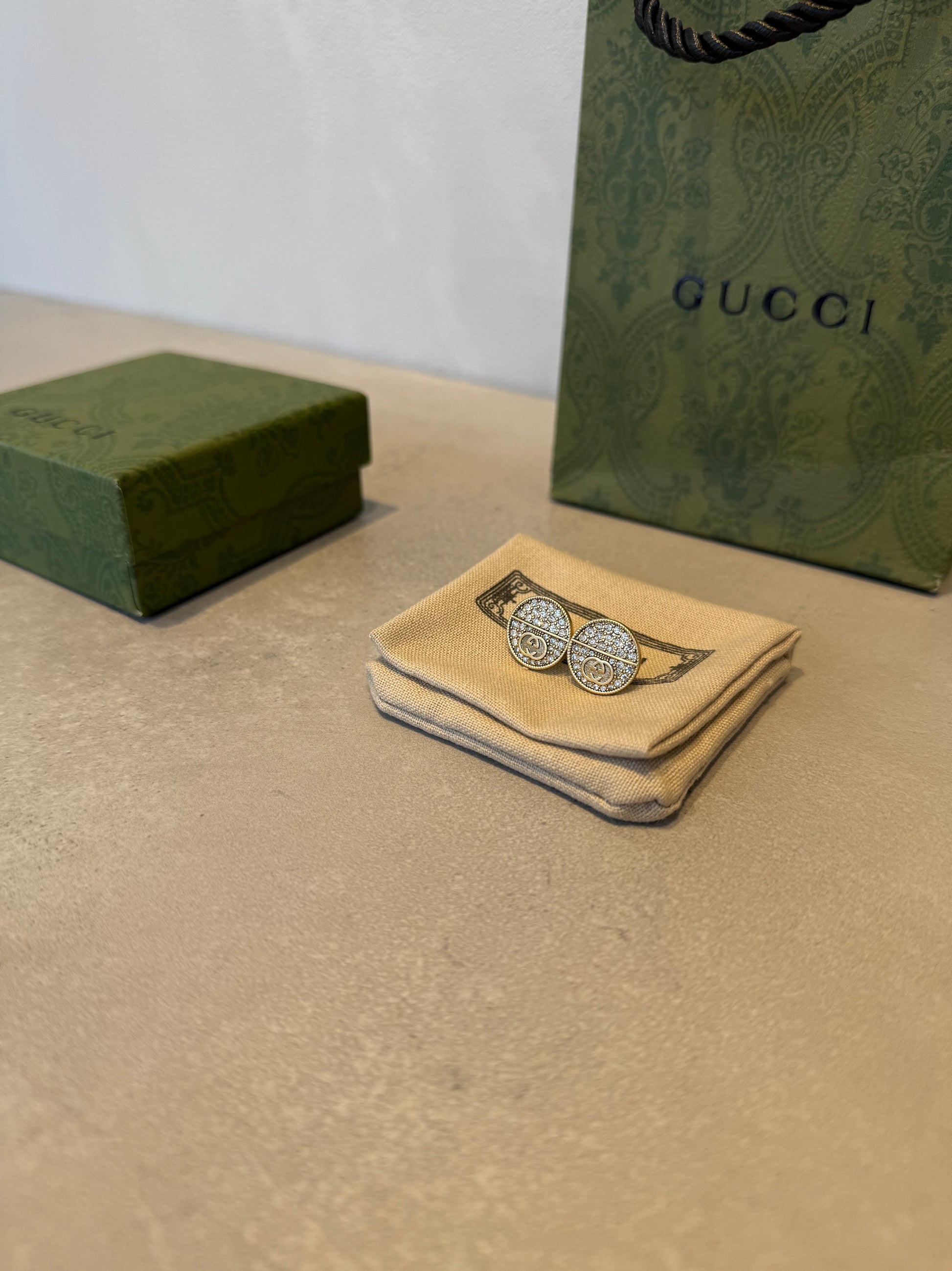 Estos aretes GG presentan un diseño minimalista y refinado que captura la esencia del lujo contemporáneo. Adornados con diamantes que brillan con elegancia, cada pieza exhibe el icónico motivo GG en su centro, creando un equilibrio perfecto entre sofisticación y modernidad. Su acabado pulido transmite una luminosidad discreta que realza cualquier rostro, mientras que su estructura versátil los convierte en compañeros ideales tanto para encuentros cotidianos como para eventos especiales. Una joya atemporal que refleja buen gusto y distinción en cada ocasión.