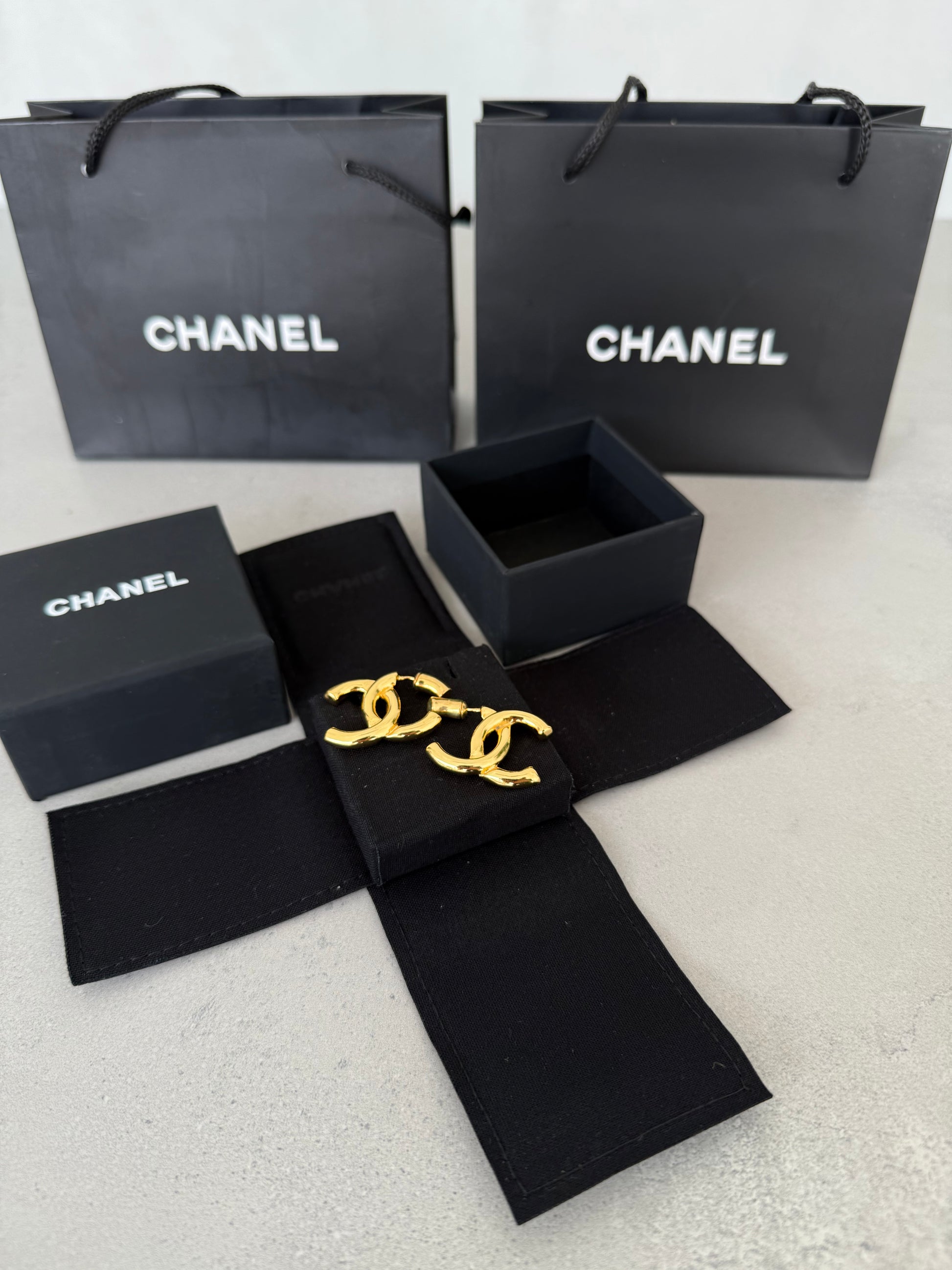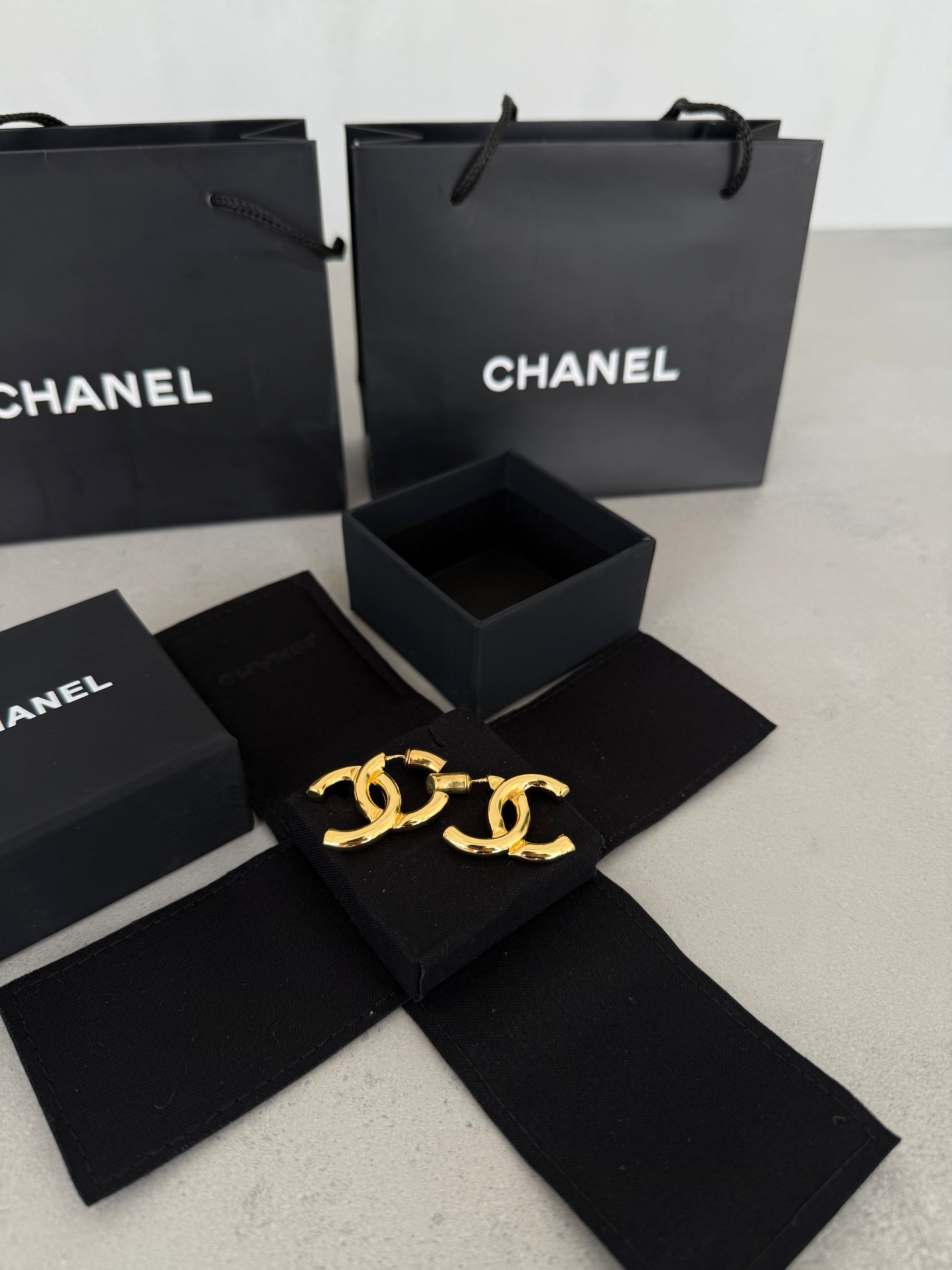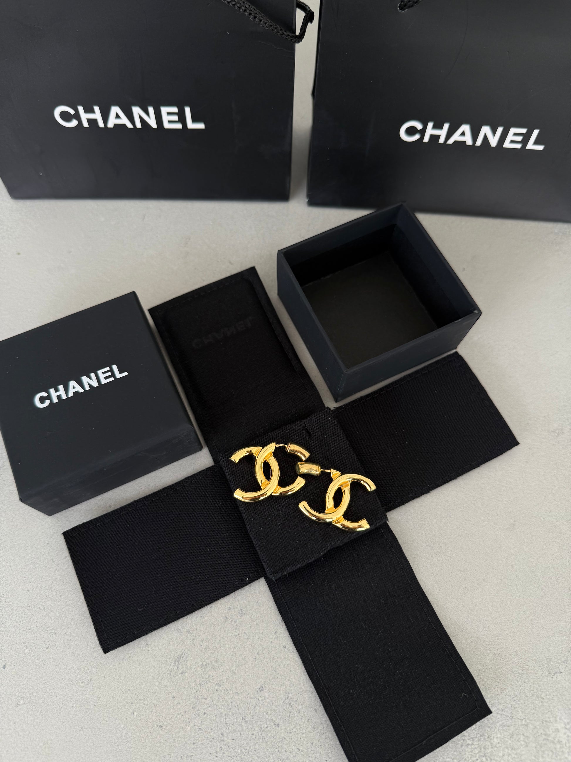 Aretes CC dorados con diseño clásico