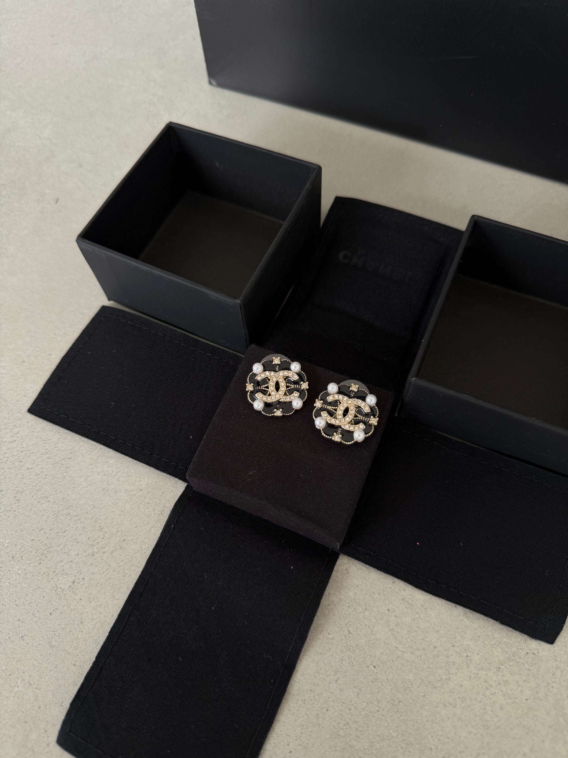 Aretes CC logo perlas y diamantes