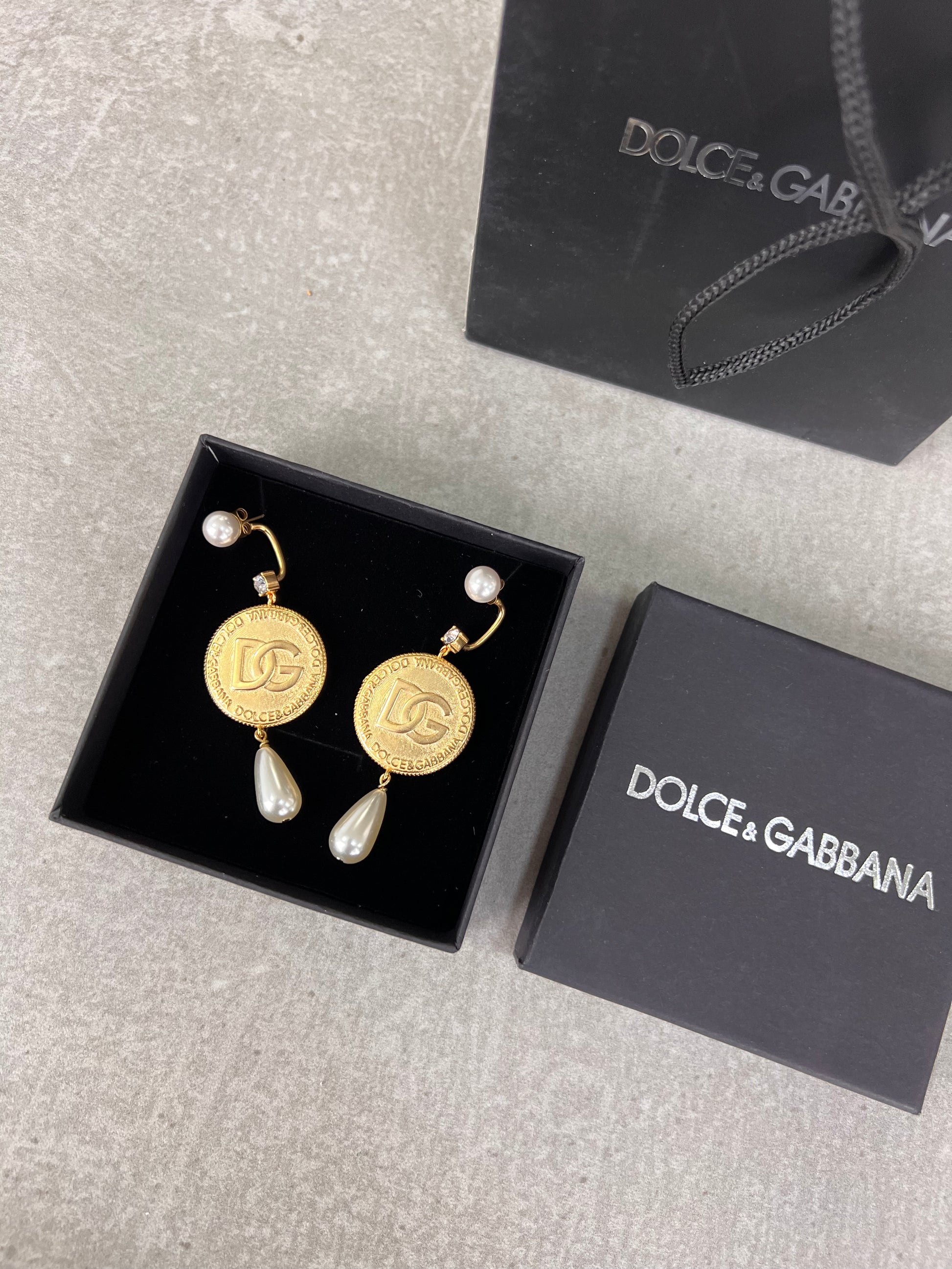 Estos aretes DG circulares dorados presentan un diseño refinado que fusiona elegancia contemporánea con un toque clásico. Las gotas de perla penden delicadamente del marco circular, creando una composición armoniosa que captura la luz con sutileza. El acabado dorado aporta calidez y sofisticación, mientras que el icónico logo DG al centro reafirma su identidad de marca. Versátiles y atemporales, estos aretes elevan tanto looks casuales como formales, convirtiéndose en la pieza perfecta para quien busca accesorios que combinen estilo y distinción.