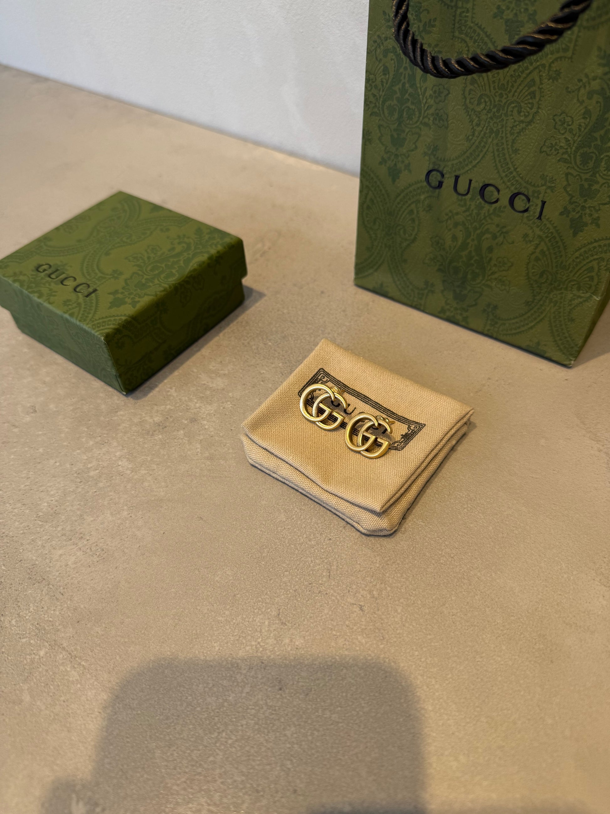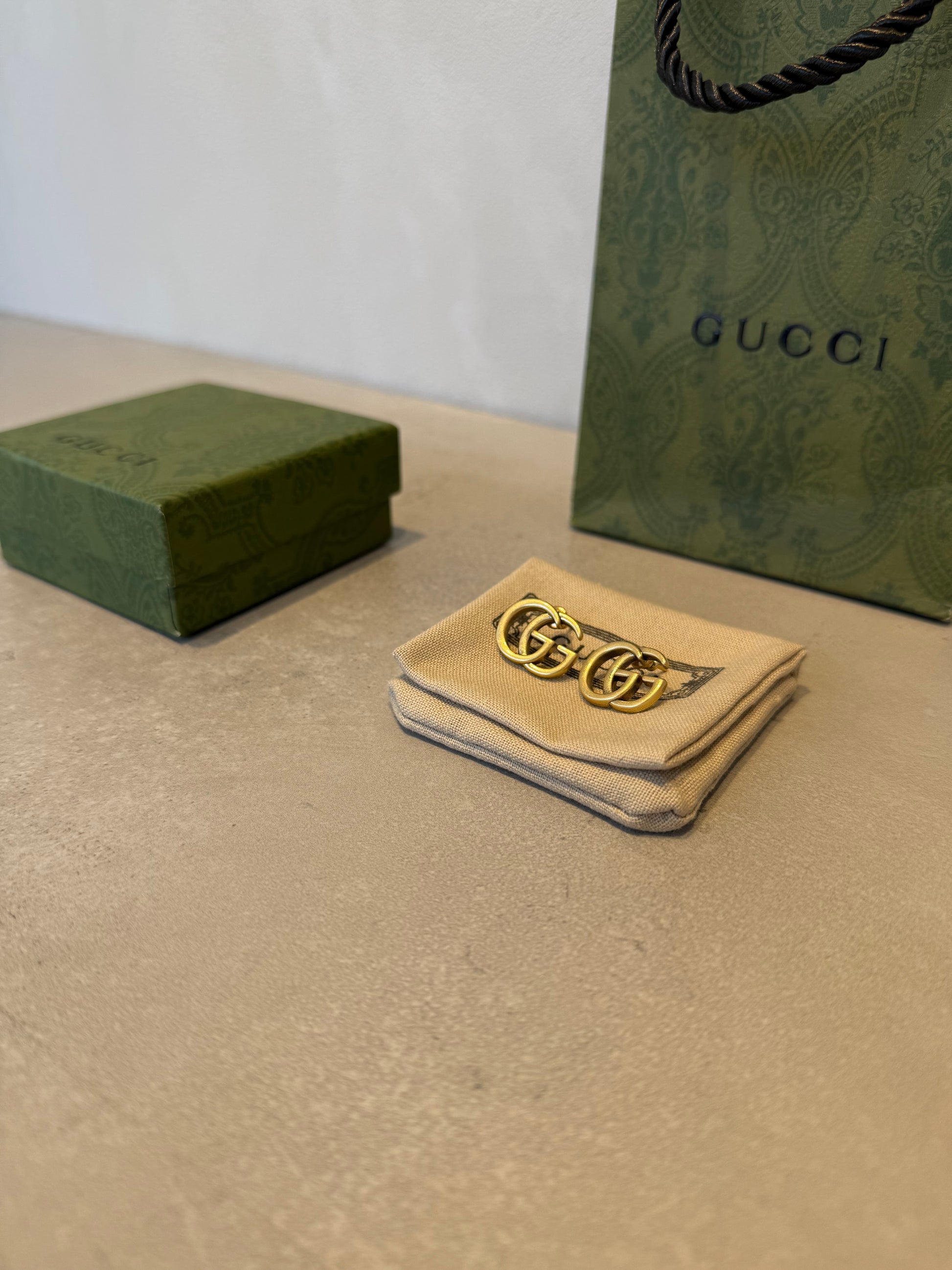 Estos aretes GG dorados encapsulan la esencia del lujo minimalista con su diseño icónico y refinado. Cada pieza presenta el distintivo logo GG en acabado dorado, que irradia elegancia y sofisticación con un brillo cálido y envolvente. Su estructura compacta los convierte en accesorios versátiles, perfectos para elevar tanto un atuendo casual como una composición formal. Estos aretes trascienden las tendencias, consolidándose como una inversión atemporal que complementa cualquier estilo personal con un toque de distinción y clase.