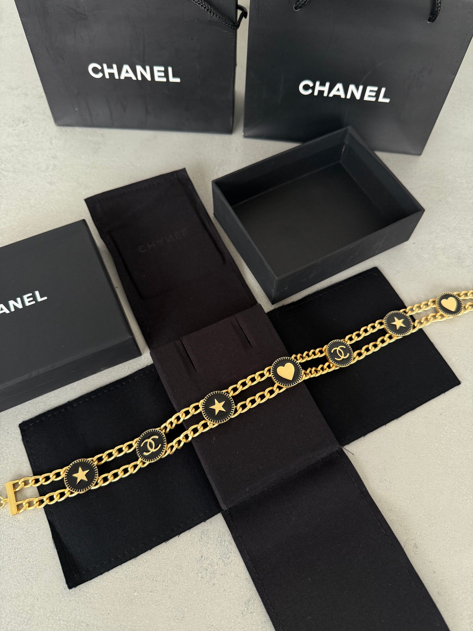 Collar CC negro y dorado