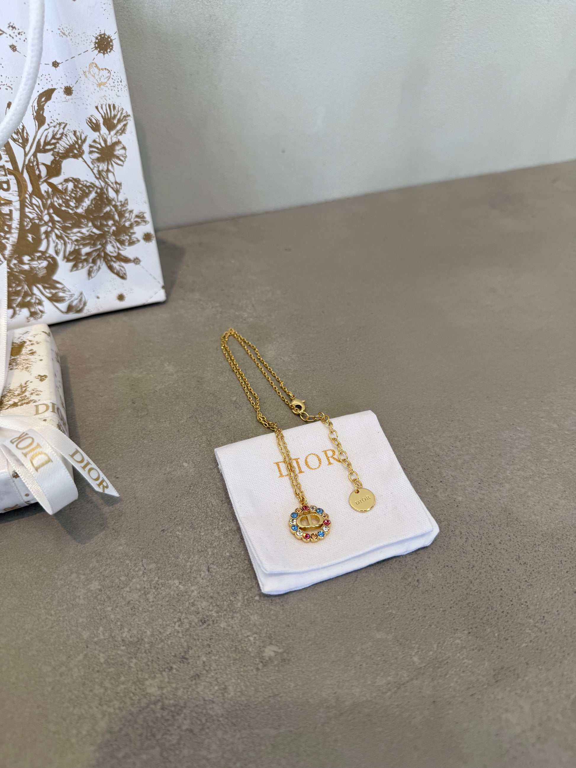Este collar CD dorado encarna la elegancia en su forma más pura. Su diseño minimalista presenta el distintivo logo CD al centro, flanqueado por detalles que realzan su sofisticación. El acabado dorado irradia un brillo cálido y refinado que trasciende las tendencias, adaptándose con gracia tanto a conjuntos casuales como a atuendos de gala. Una pieza de joyería versátil que se convierte en el complemento perfecto para quien busca expresar su estilo con discreción y distinción.