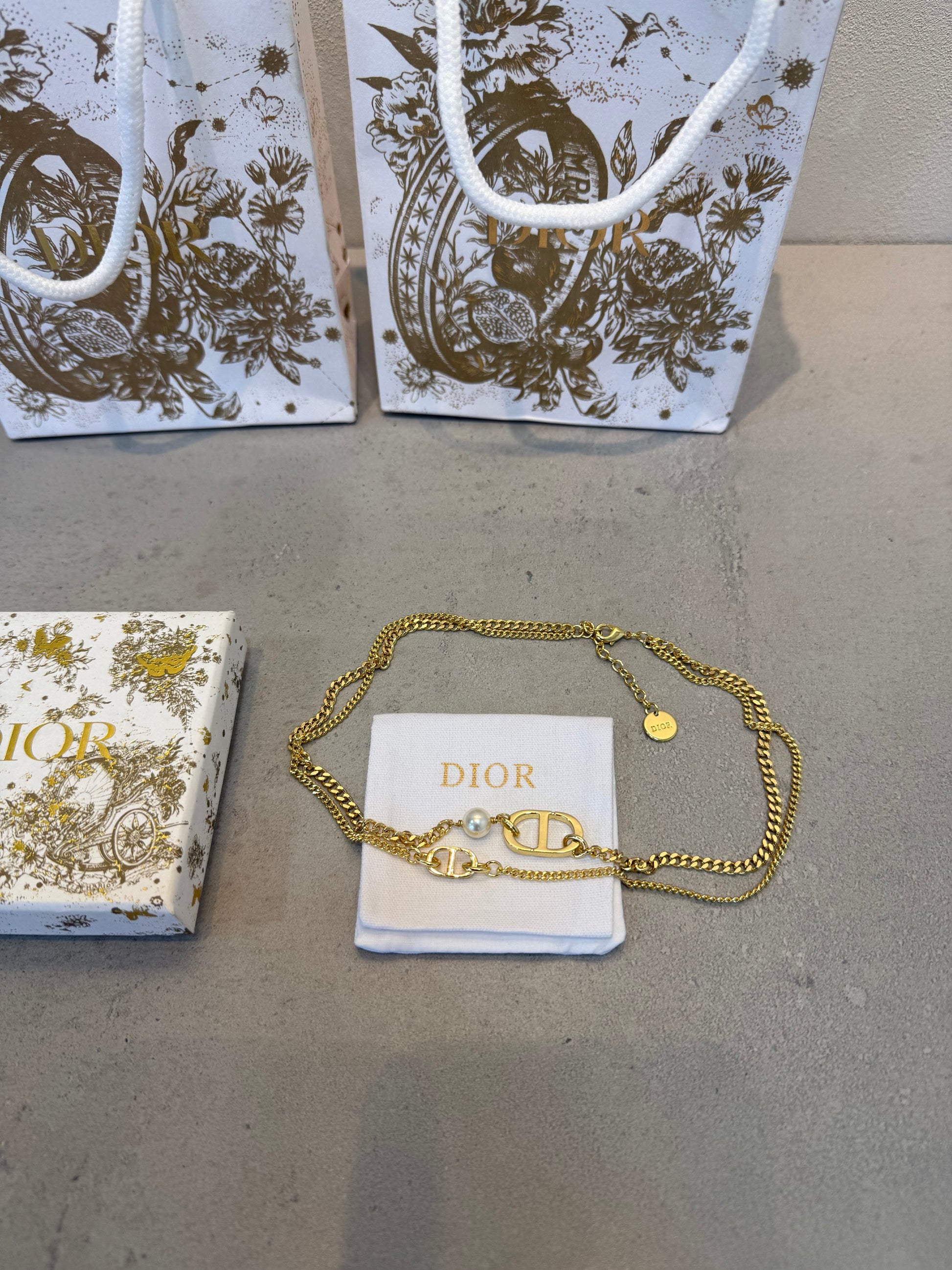 Collar CD dorado y perla -5042