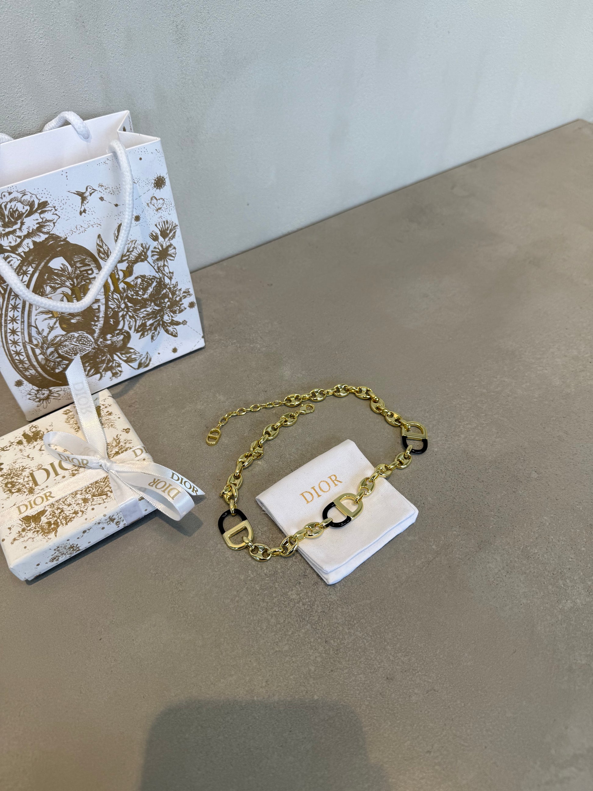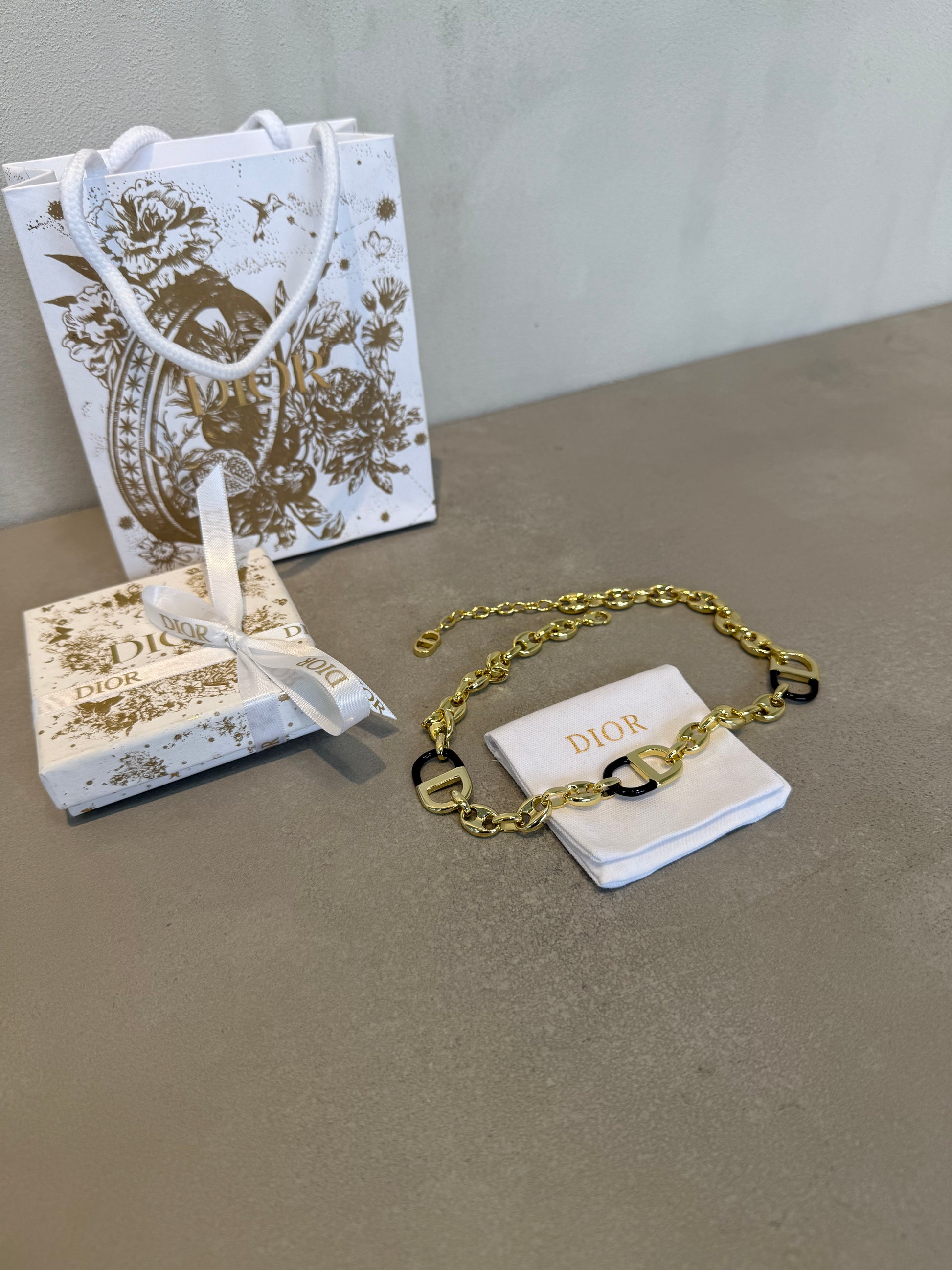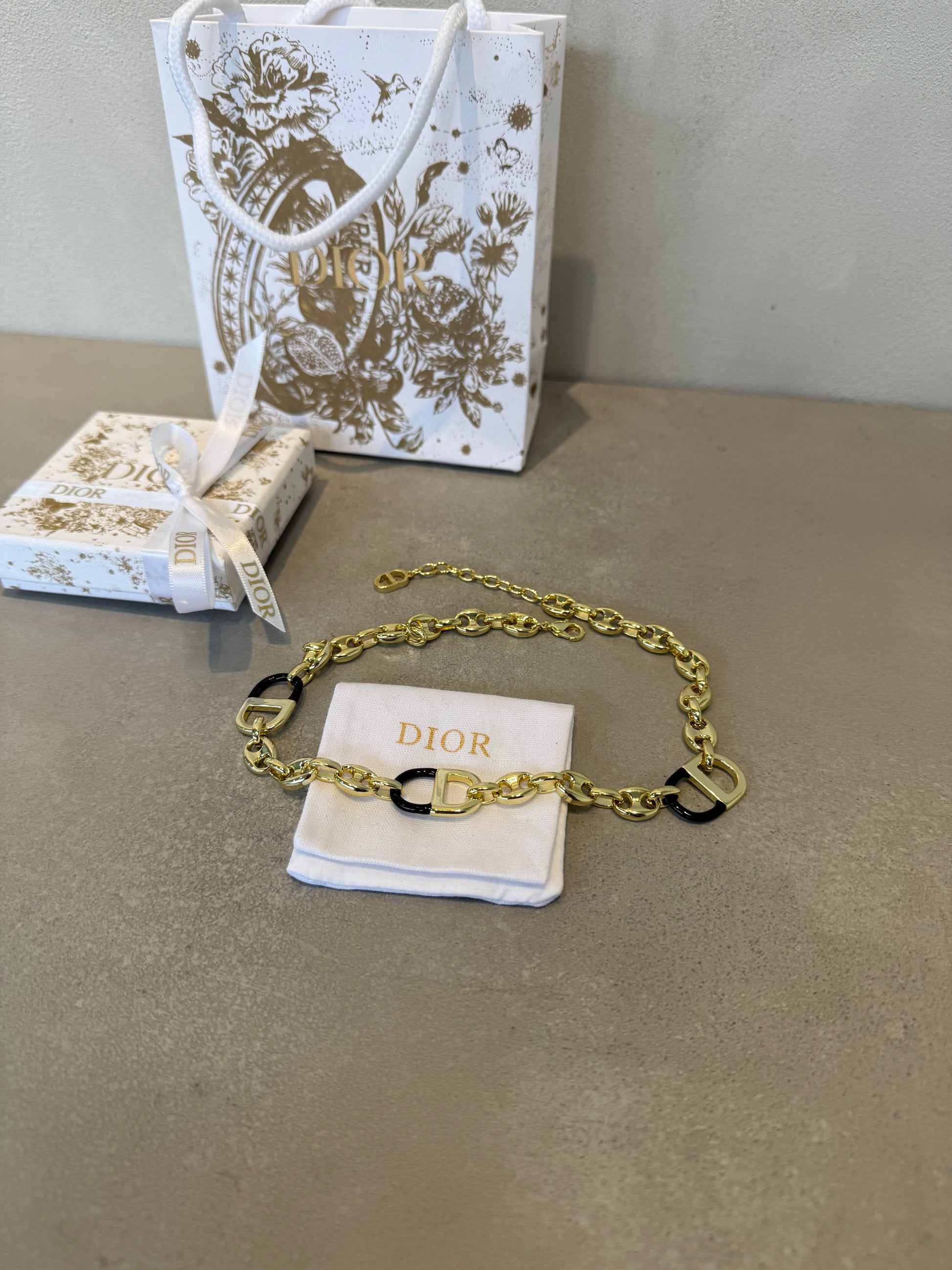 Este collar CD destaca por su diseño minimalista y contemporáneo, presentando el icónico logo de la marca como elemento central de una composición elegante. Su acabado dorado confiere una luminosidad refinada que trasciende las tendencias, adaptándose con naturalidad tanto a atuendos cotidianos como a ocasiones especiales. La pieza transmite una sofisticación discreta, caracterizada por su proporción equilibrada y su capacidad de complementar cualquier estilo personal. Un accesorio versátil que encarna la atemporalidad y la distinción, perfecto para quienes valoran la calidad y la elegancia en sus detalles.