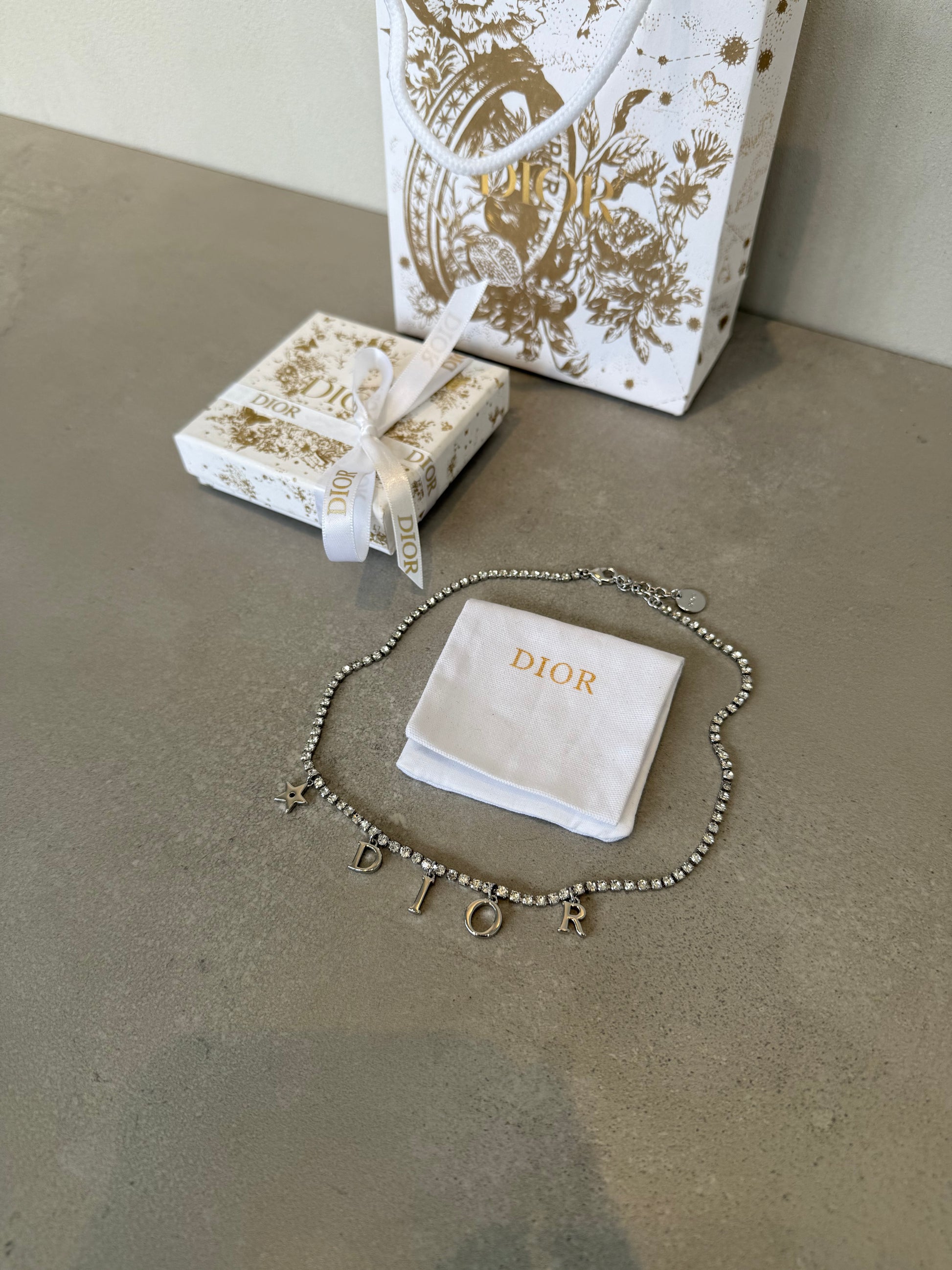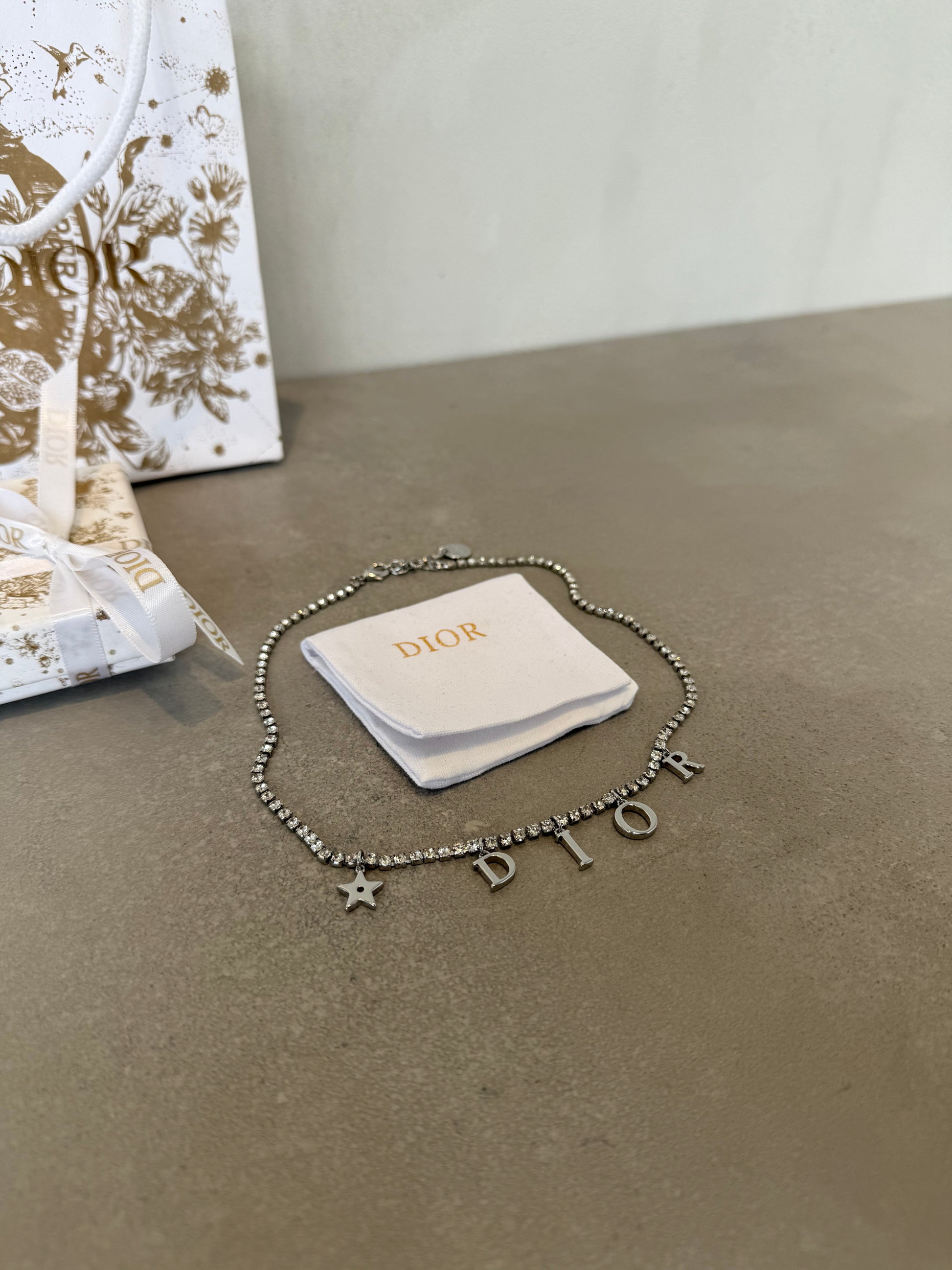 Este collar CD destaca por su diseño minimalista y contemporáneo, presentando el icónico logo de la marca en acabado plateado como elemento central. Su estructura elegante combina sofisticación con versatilidad, permitiendo que se adapte tanto a looks casuales como a conjuntos más formales. El brillo plateado aporta una luminosidad discreta que realza cualquier atuendo sin restar protagonismo, convirtiéndolo en una pieza atemporal y esencial para la joyería de diario o para ocasiones especiales.