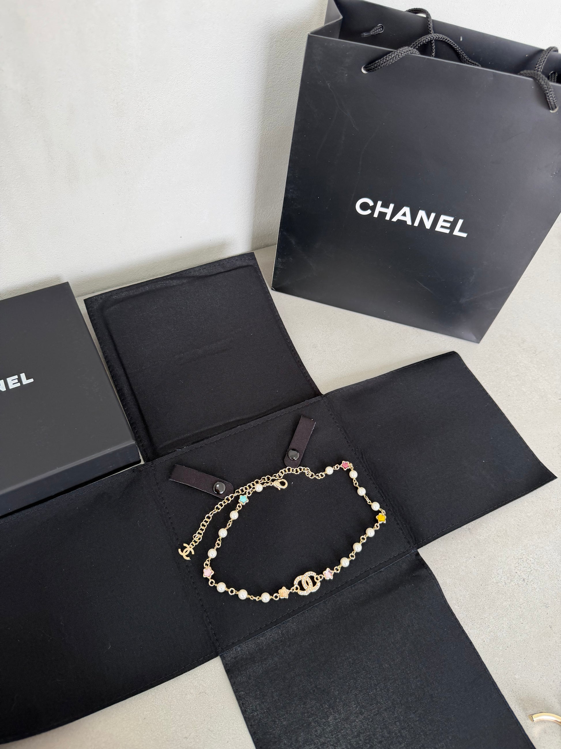 Este collar CC destaca por su diseño versátil y elegante, presentando el icónico logo de la marca como elemento central. Su acabado en tonos dorados aporta un brillo refinado que se adapta tanto a looks casuales como formales, convirtiéndolo en una pieza imprescindible de joyería. Con una estética atemporal y sofisticada, este accesorio complementa cualquier atuendo, transmitiendo lujo y distinción en cada ocasión.