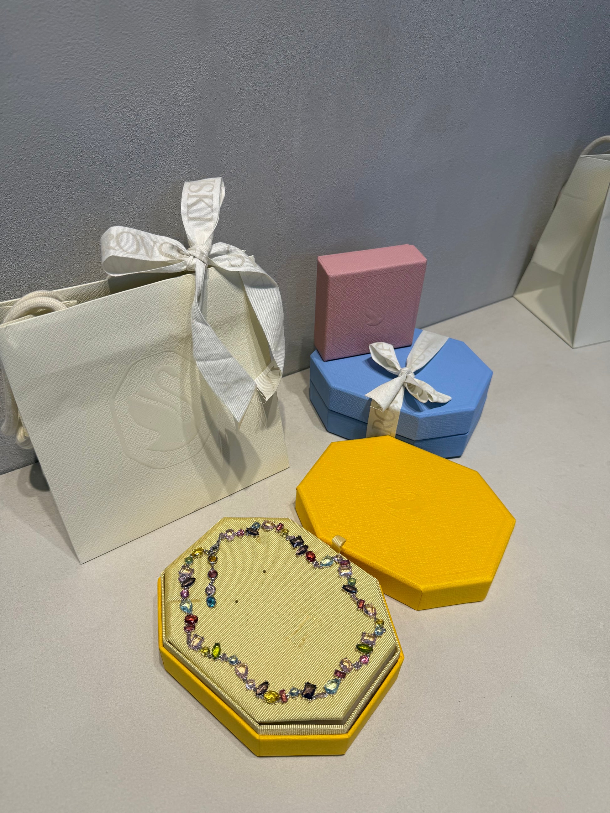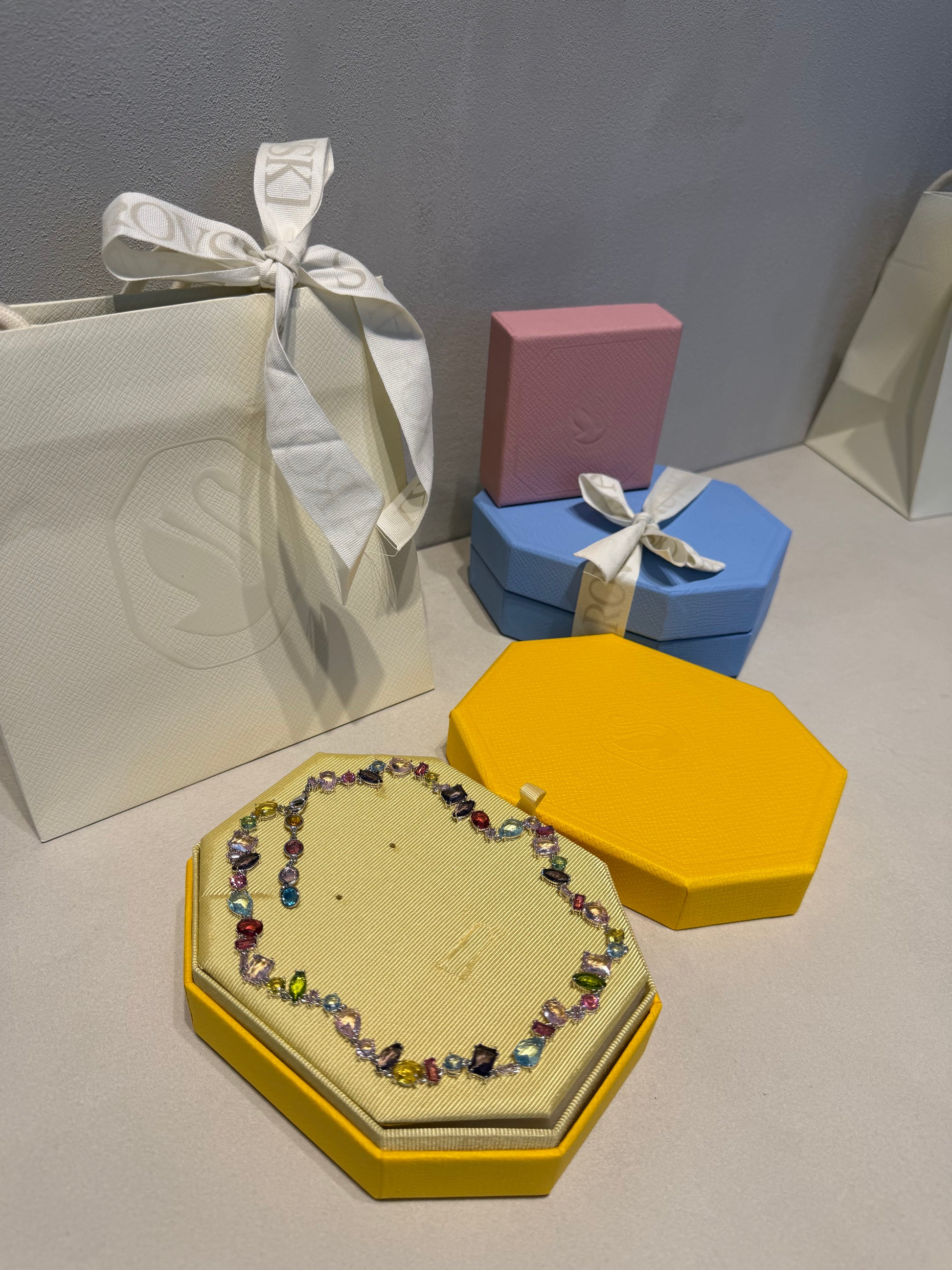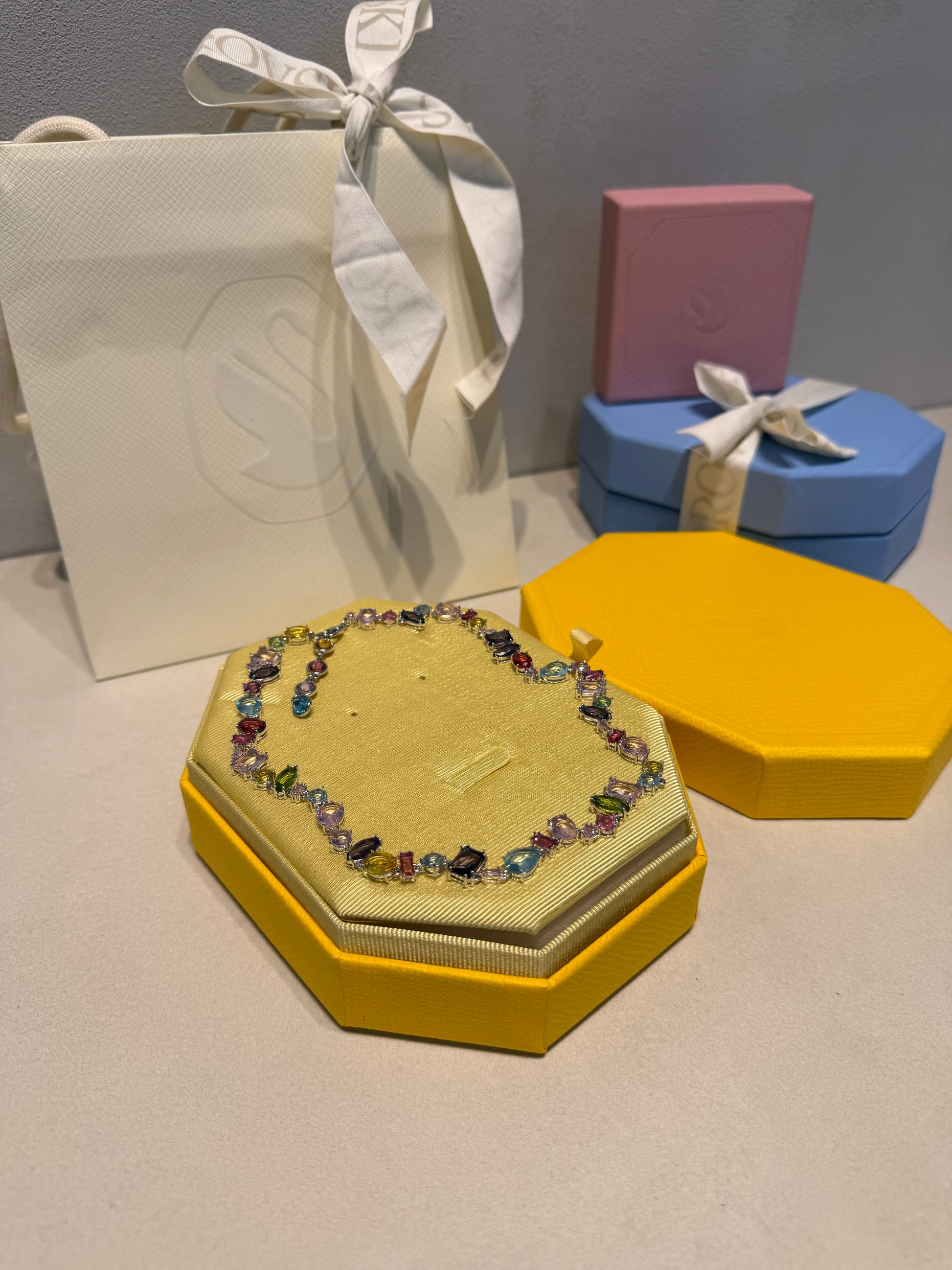 Este collar SW destaca por su diseño versátil y contemporáneo, presentando una combinación armoniosa de colores que refleja tendencias actuales. Su estructura elegante integra detalles cuidadosamente seleccionados que aportan profundidad visual y sofisticación. El acabado dorado proporciona un brillo refinado que trasciende la casualidad, permitiendo transitar sin esfuerzo entre looks diarios y ocasiones especiales. Una pieza versátil que se reinventa con cada combinación, convirtiéndose en el accesorio perfecto para quien busca expresar su estilo personal con elegancia atemporal.