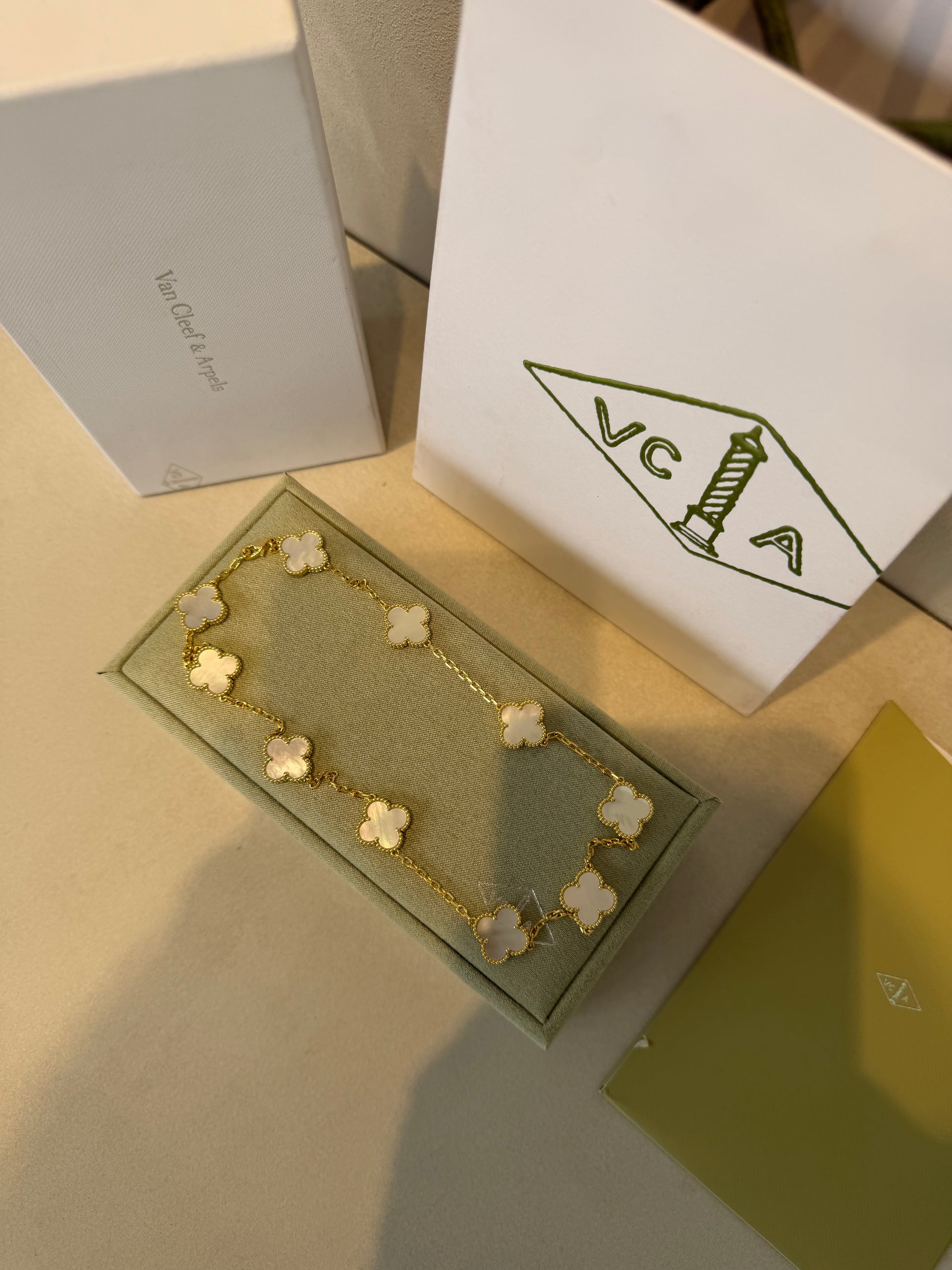 Este collar VCA blanca encarna la elegancia atemporal con su diseño minimalista y refinado. La perla blanca, símbolo de sofisticación, se presenta como protagonista absoluta, complementada por detalles dorados que aportan calidez y luminosidad. Su estructura delicada transmite una feminidad discreta pero impactante, perfecta para elevar tanto atuendos cotidianos como ocasiones especiales. Una pieza versátil que trasciende tendencias, convirtiéndose en un accesorio indispensable para quien aprecia la belleza clásica y el buen gusto.