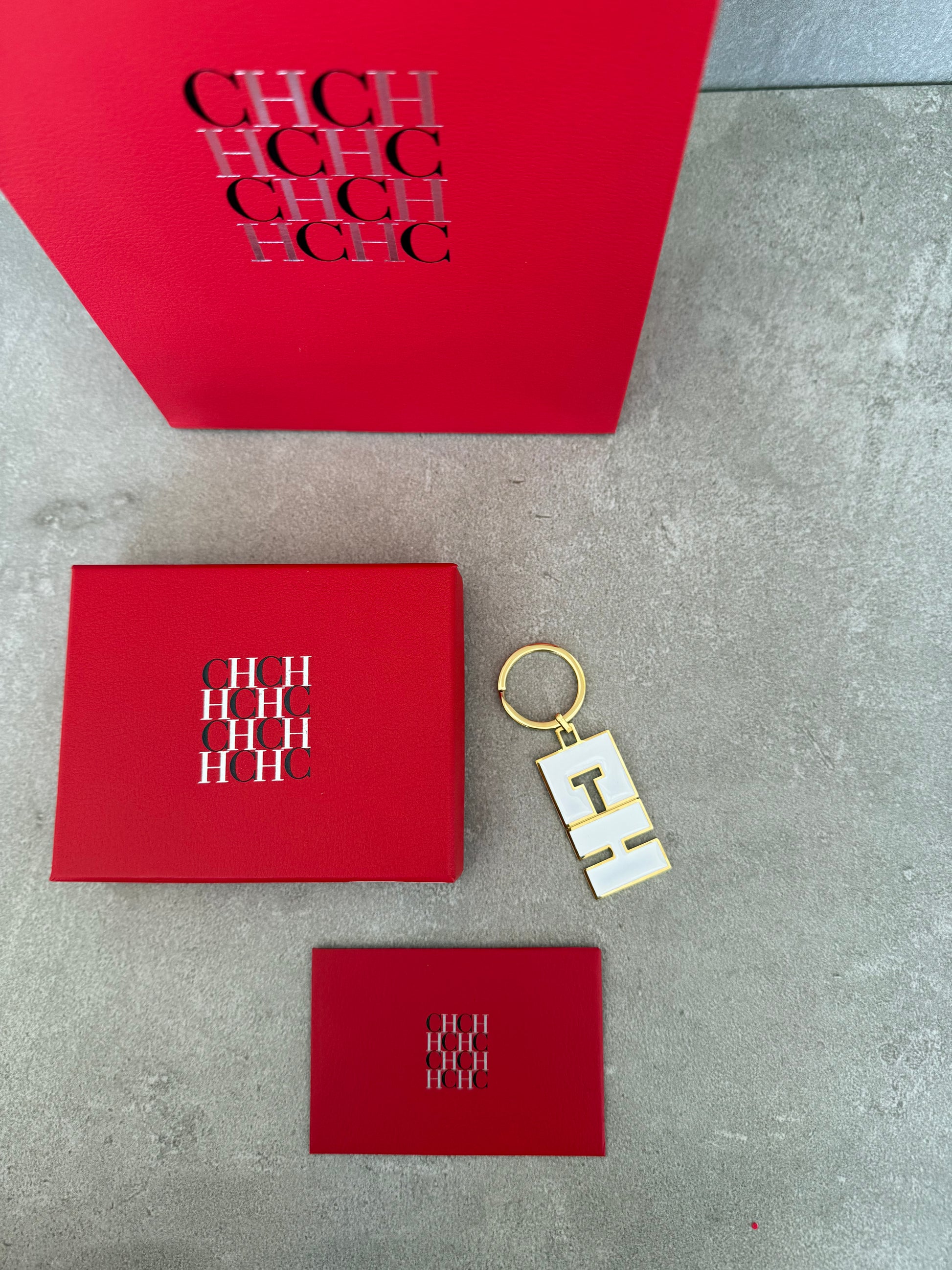 Este llavero CH logo blanco destaca por su diseño limpio y sofisticado, con el icónico logotipo de la marca en un acabado blanco que irradia modernidad.