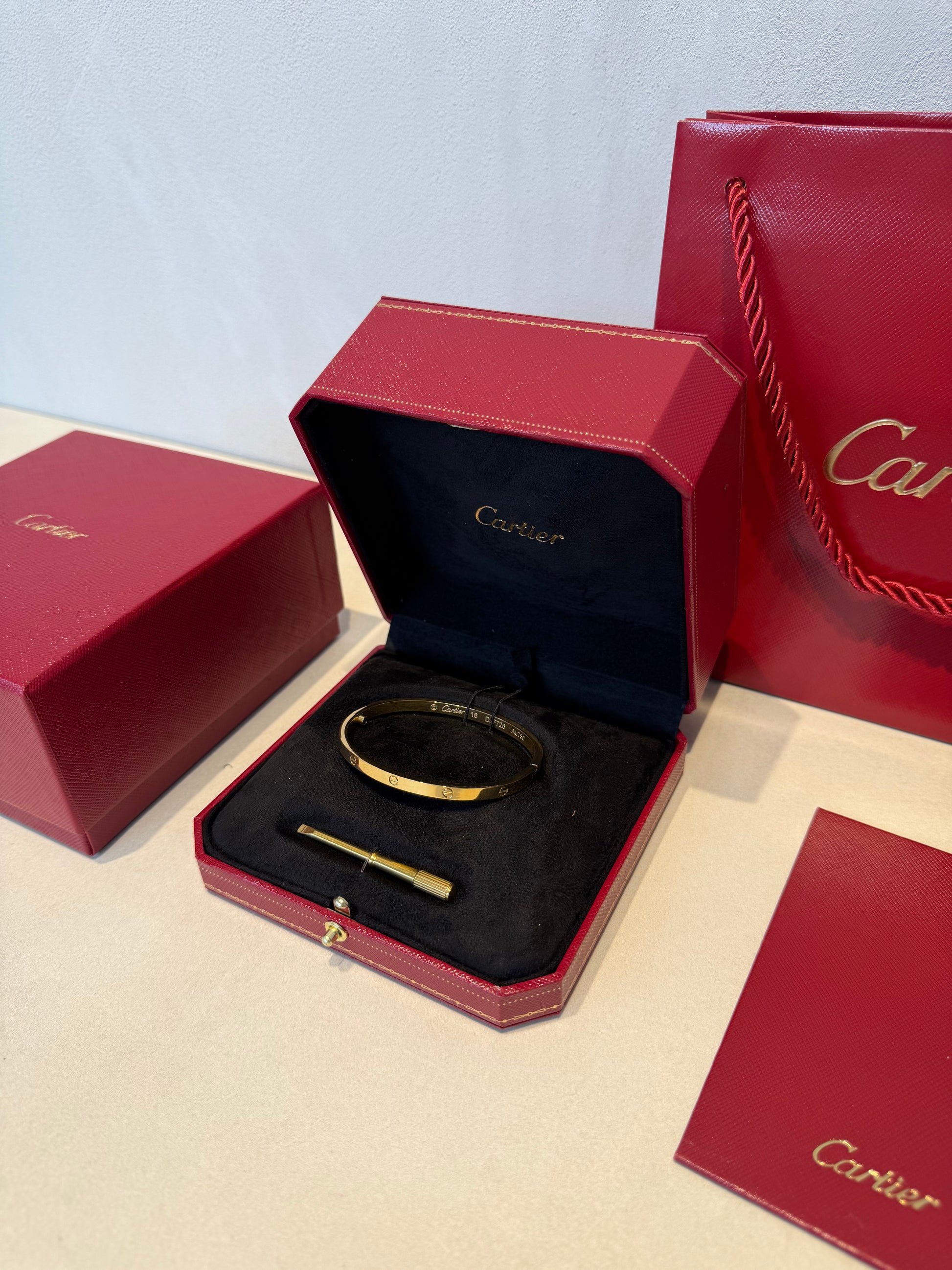 La Pulsera CRT dorada en talla pendiente destaca por su diseño sobrio y elegante. Con un acabado dorado pulido, esta pieza irradia un brillo discreto que captura la luz sin resultar ostentosa.