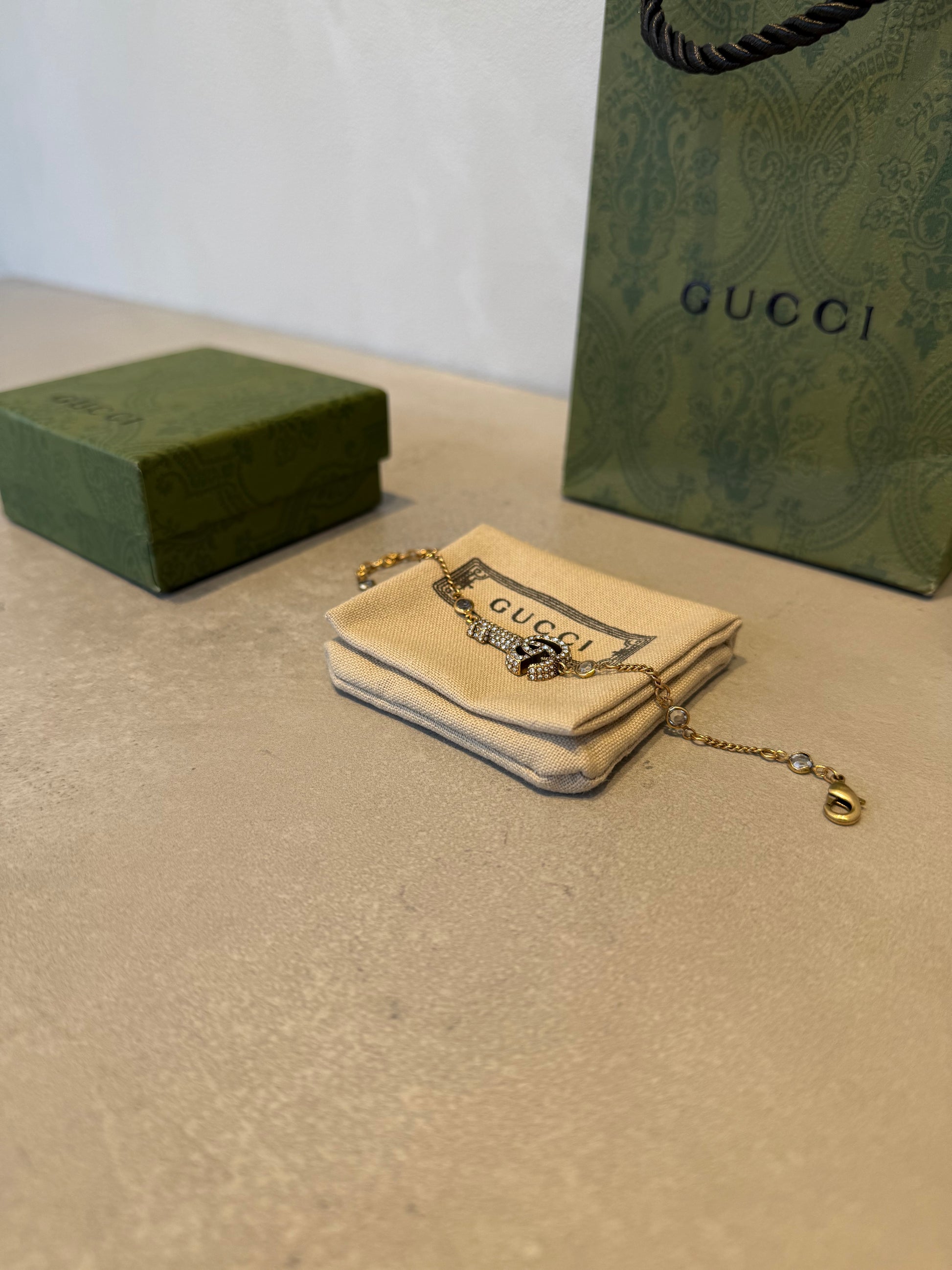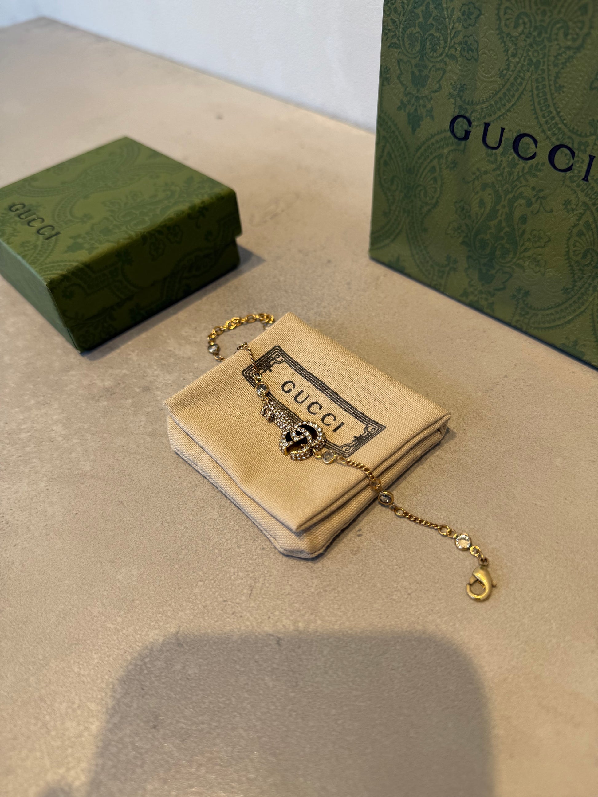 Pulsera GG llave dorada- diamantes blancos