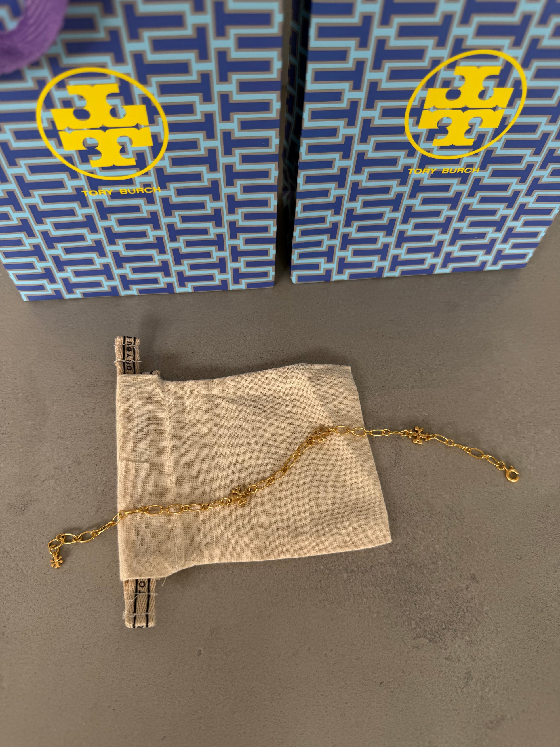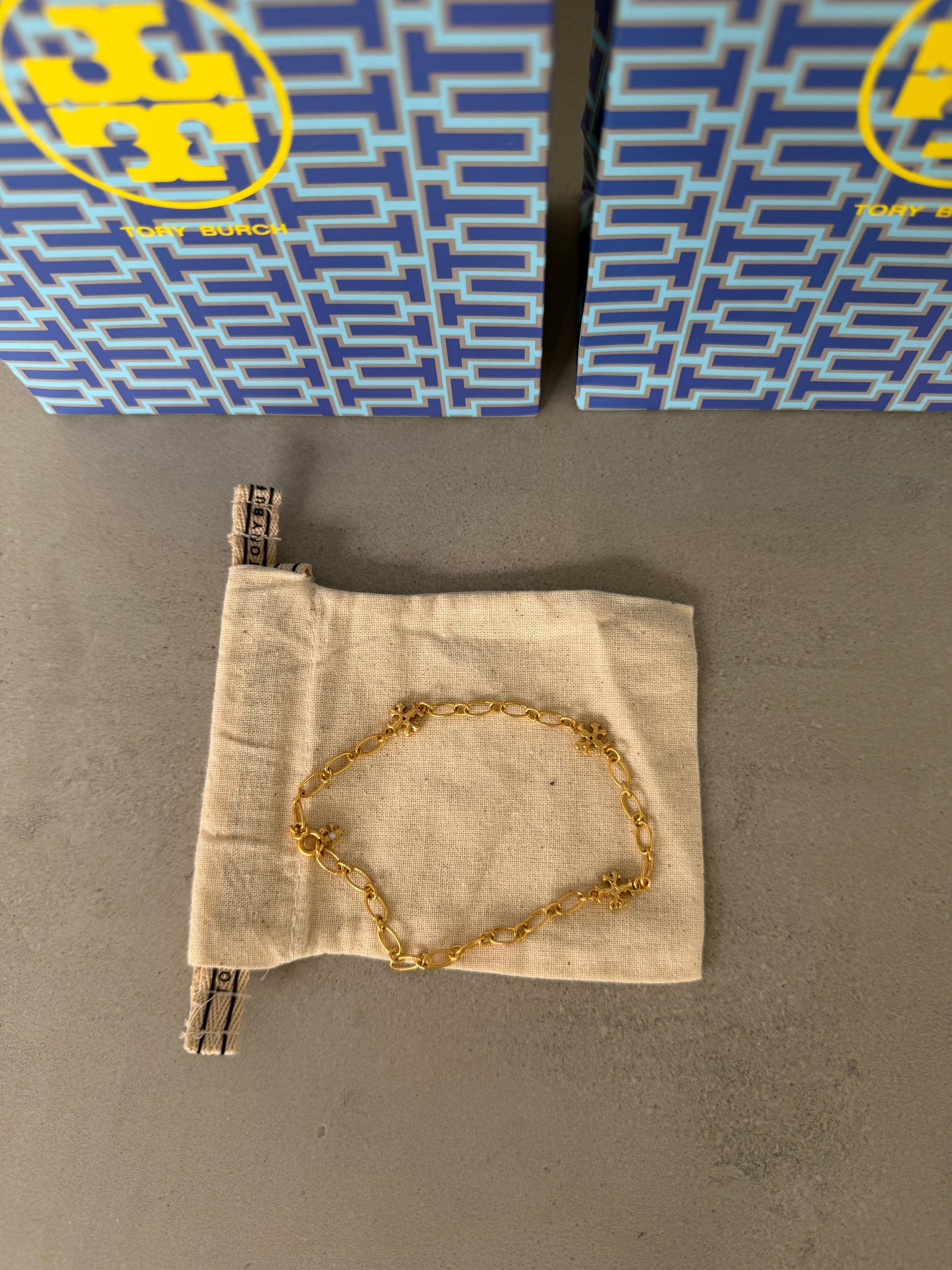 Pulsera TB dorada con eslabones finos y detalles decorativos PRECIO PENDIENTE