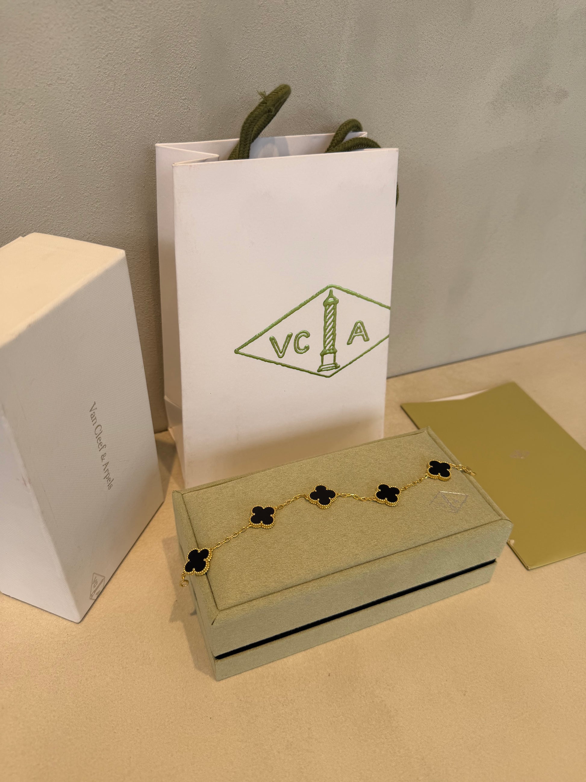 Esta pulsera VCA negra encarna la elegancia minimalista con un toque de sofisticación contemporánea. Su diseño en tonos oscuros proyecta una estética refinada y versátil, perfecta para complementar tanto atuendos casuales como formales. La pieza destaca por su construcción cuidadosa que refleja la calidad de la marca, ofreciendo un accesorio atemporal que se adapta a cualquier estilo personal. Su presencia discreta pero impactante la convierte en una inversión de moda que trasciende las tendencias, aportando un toque de distinción a cada ocasión.